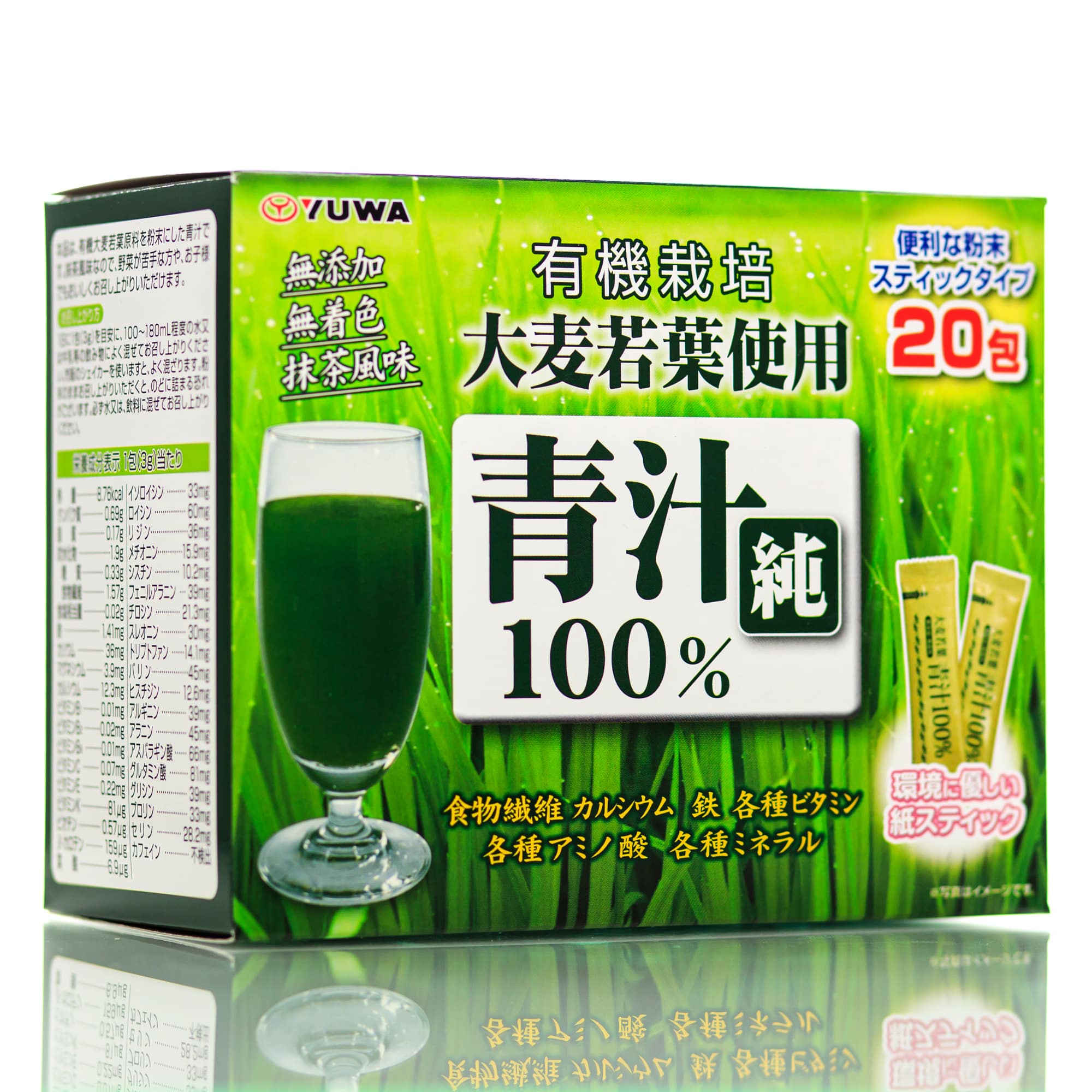 Состав (пакет 3 г.): Пищевые волокна: 1,53 г., Натрий: 11,4 мг., Кальций: 10,8 мг., Железо: 1,41 мг., Калий 48 мг., Магний: 4,5 мг., Витамин С: 0,09 мг., Витамин Е: 0,18 мг., Витамин B1 0,01 мг., Витамин В2: 0,02 мг., Витамин В6: 0,02 мг., Витамин К: 54 мкг., Фолиевая кислота: 4,5 мкг., β-каротин 150 мкг., изолейцин 27,3 мг., Лейцин 54 мг., Лизин 39 мг., Метионин 7,8 мг., Цистин: 7,8 мг., Фенилаланин 33 мг., Тирозин 14,7 мг., Треонин: 27,3 мг., Триптофан: 10,2 мг., Валин 36 мг., Гистидин: 10,5 мг., Аргинин: 33 мг,. Аланин 39 мг., Аспарагиновая кислота 60 мг., Глутаминовая кислота 78 мг., Глицин: 33 мг., Пролин 33 мг., Серин: 25,2 мг.