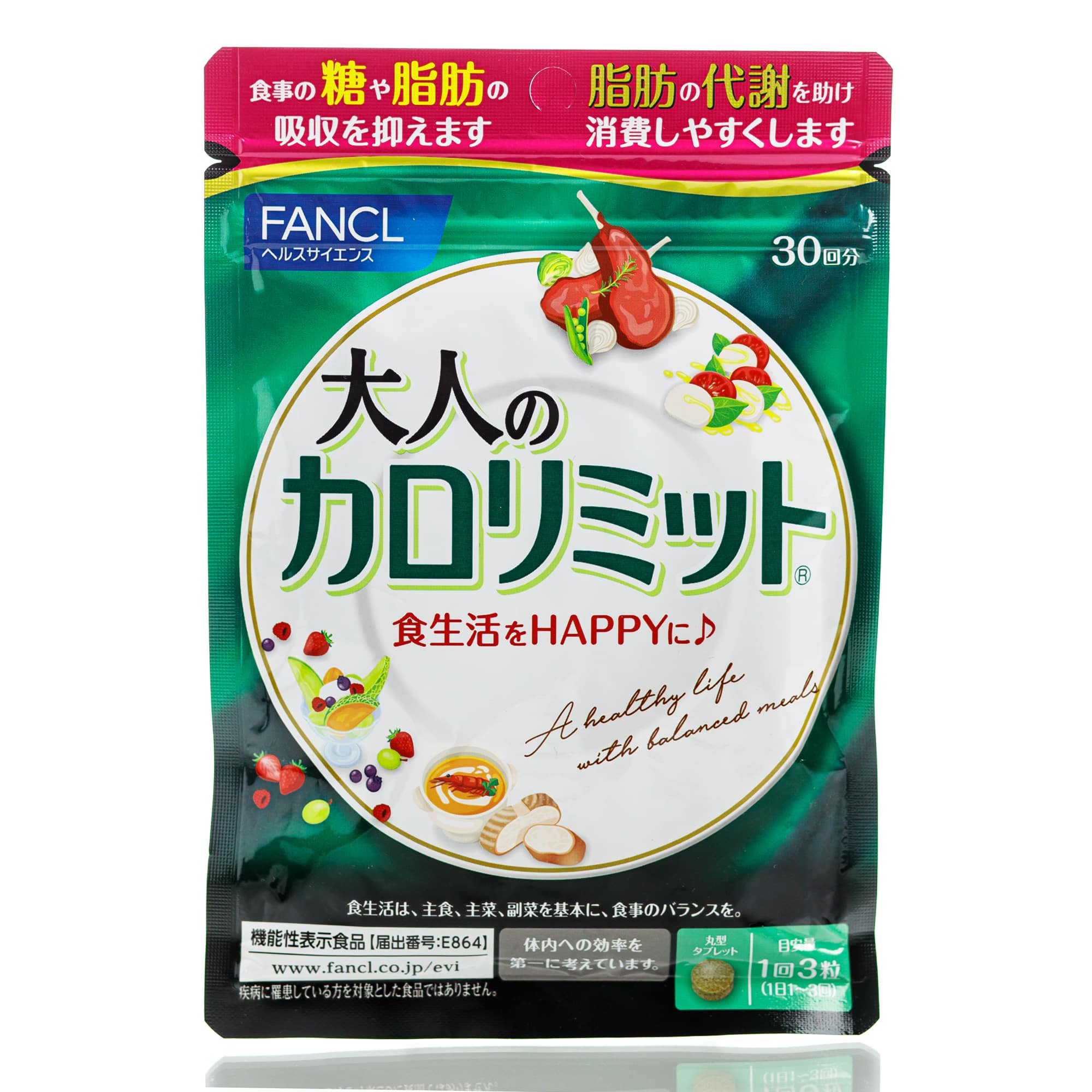 Блокатор калорий FANCL CaloLimit Special создан для более активного расщепления углеводов. Прекрасно подойдет для возраста после 40 лет, так как метаболизм начинает замедляться и контролировать вес становится сложнее. Рекомендуется совмещать применение CaloLimit Для Взрослых (темно зеленая упаковка) с обычным CaloLimit (салатовая упаковка). 1 раз в день перед приемом наиболее калорийной пищи принимайте CaloLimit Для Взрослых а в остальное время CaloLimit.