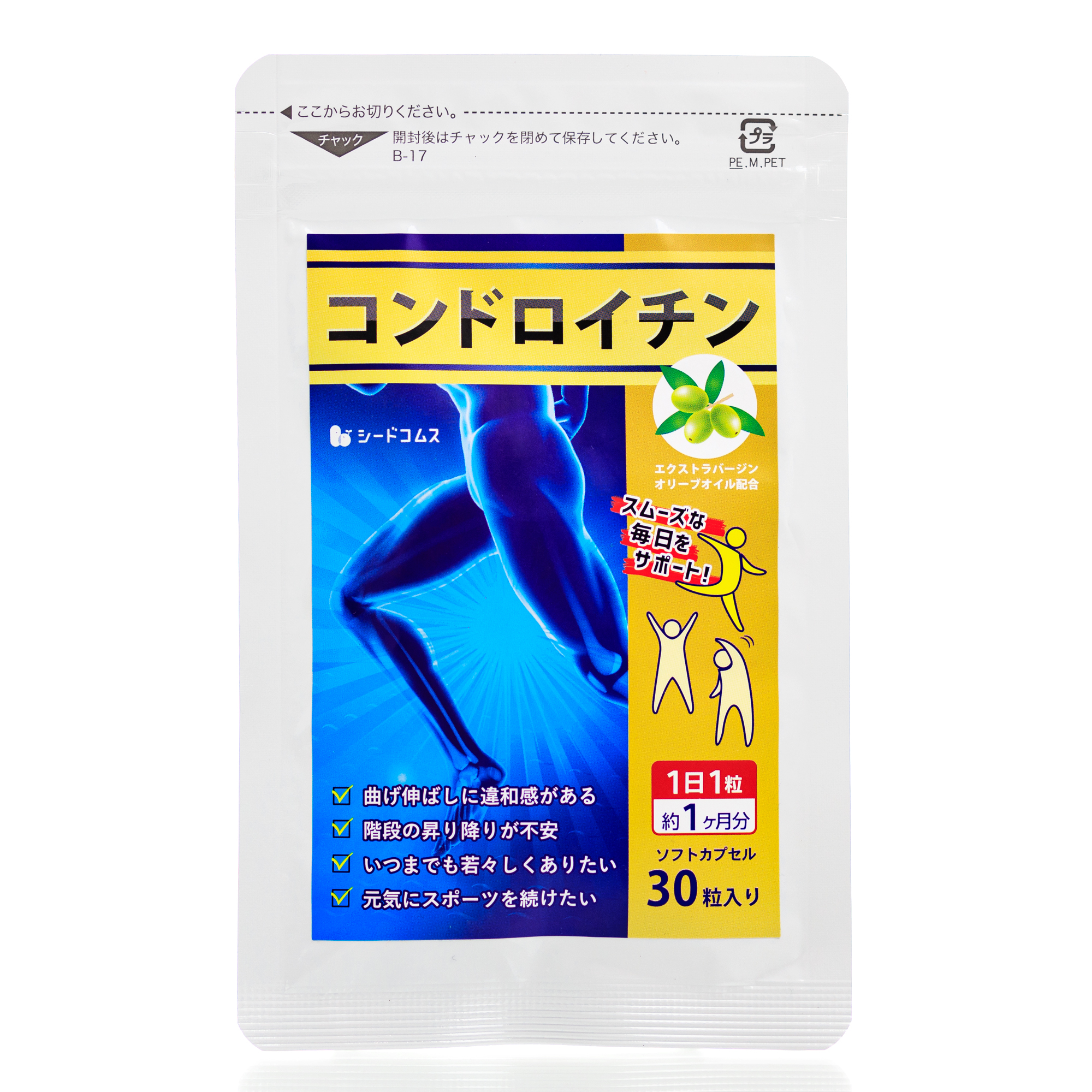 Состав: экстракт акульего хряща (20% хондроитина сульфата) — 120 мг, оливковое масло (первого отжима) — 156 мг, декстрин/желатин, глицерин, сложный эфир глицерина и жирной кислоты.