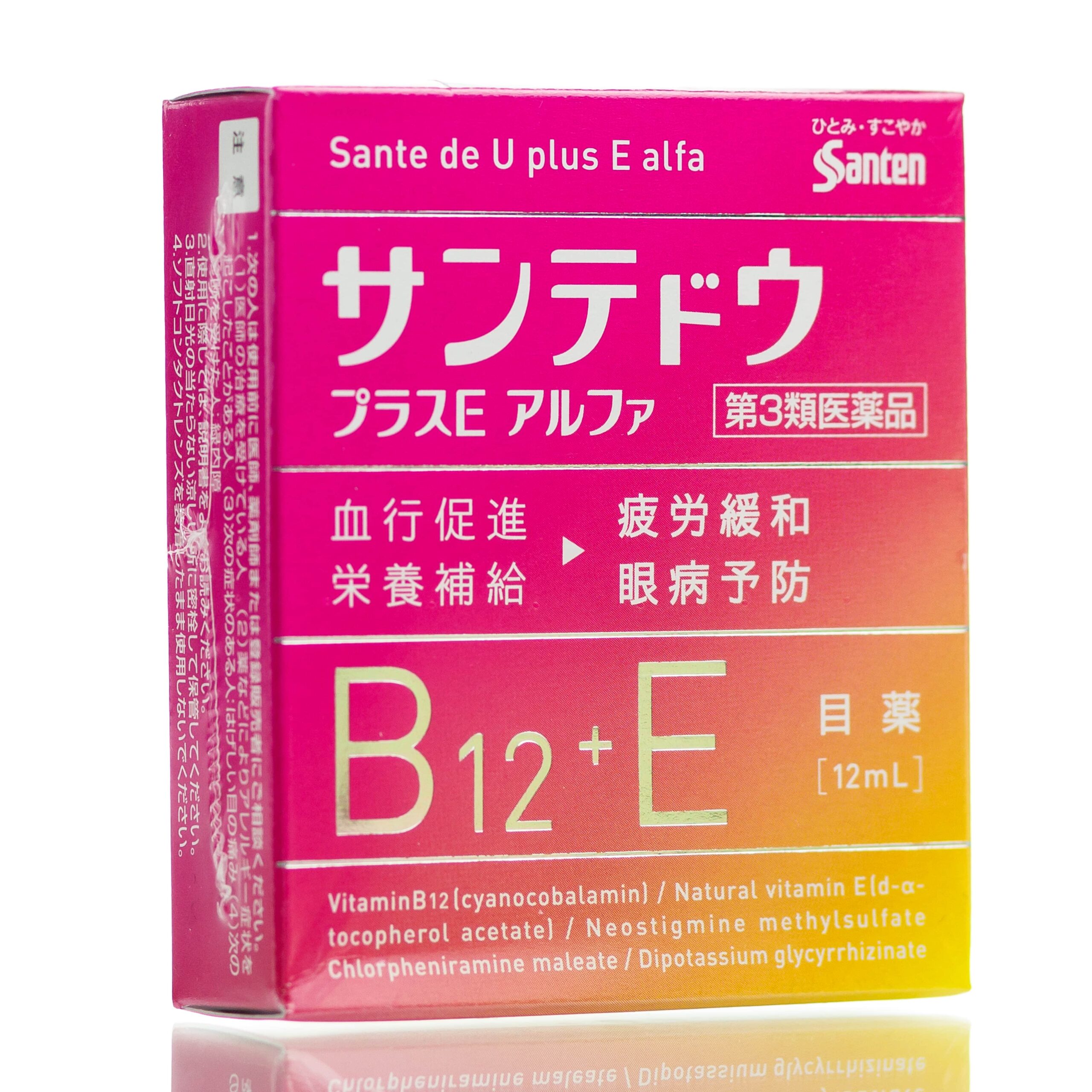 Капли для глаз Sante de U plus E alfa – продукт офтальмологического концерна Santen. В составе 5 активных компонентов для профилактики и устранения усталости глаз, покраснений, воспалений.