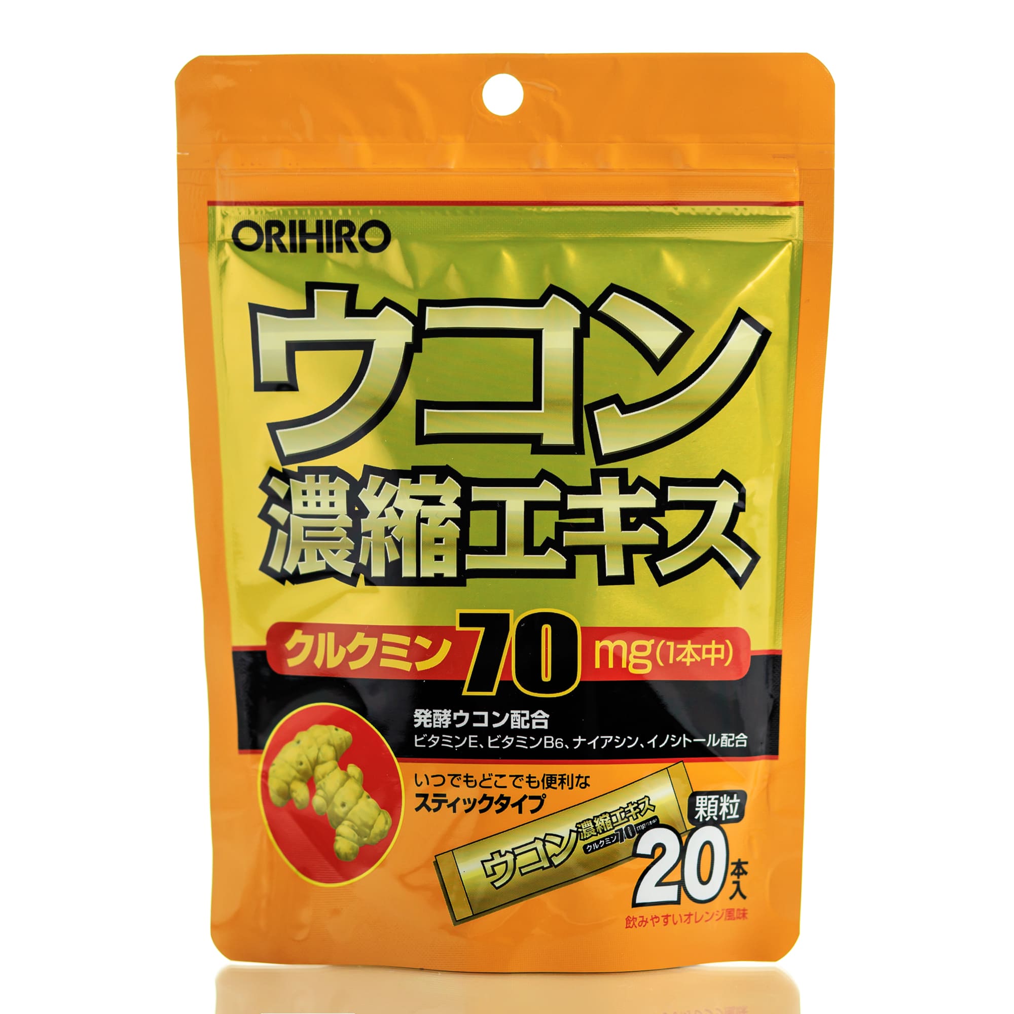 Биодобавка обладает приятным апельсиновым вкусом, каждая доза в удобной индивидуальной упаковке. 1 пакетик содержит 70 мг куркумина.