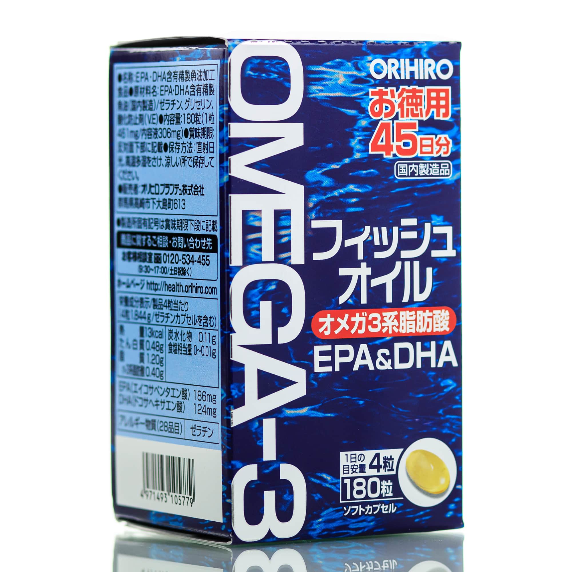 Состав: EPA (эйкозапентаеновая кислота) — 186 мг, DHA (докозагексаеновая кислота) — 124 мг, желатин, глицерин, витамин Е.