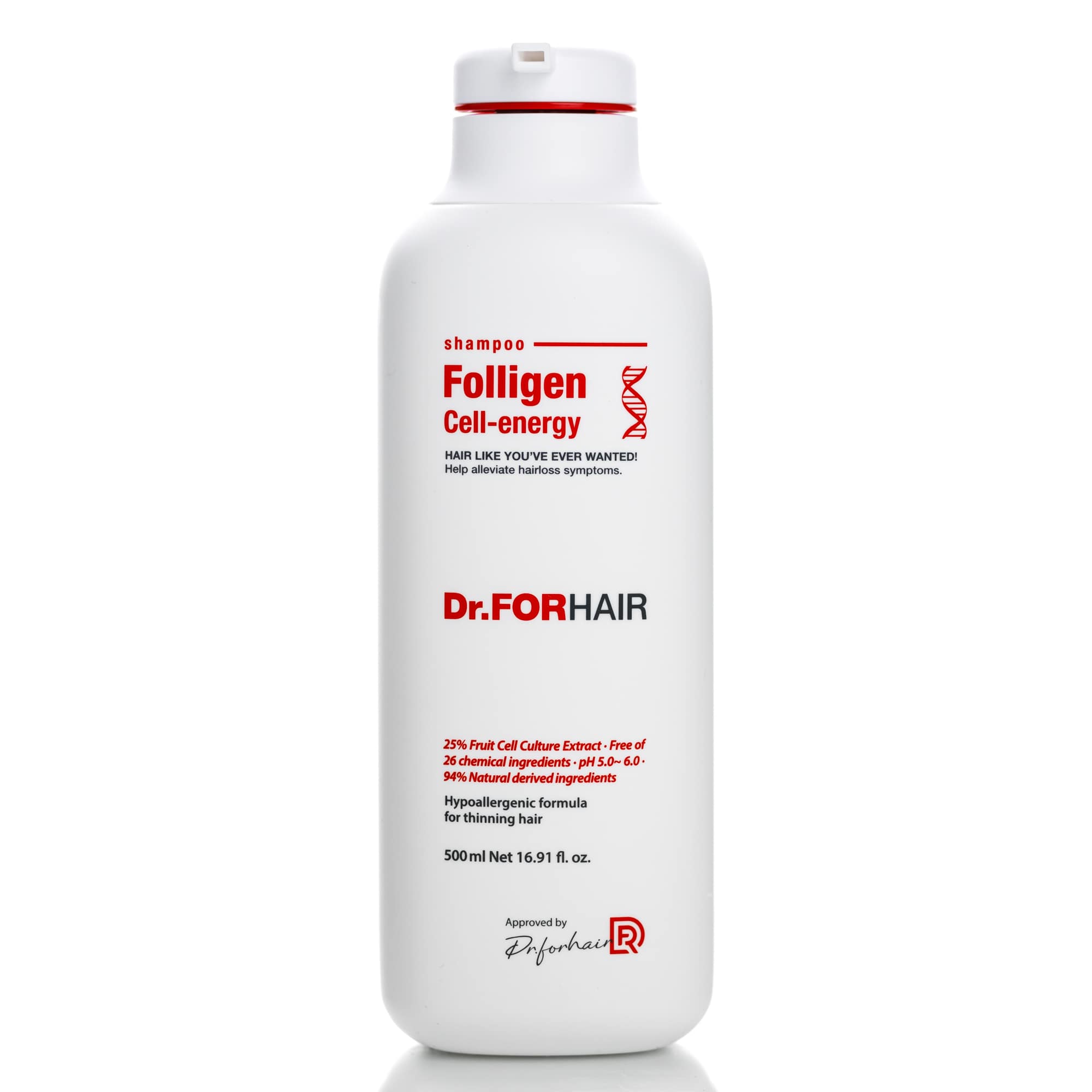 Липосомальный комплекс против выпадения Folligen Complex™ (биотин, экстракт карликовой пальмы, керамид NP) проникает глубоко в фолликулы и уменьшает негативное действие дигидротестостерона, что приводит к ослаблению волоса и его потере;