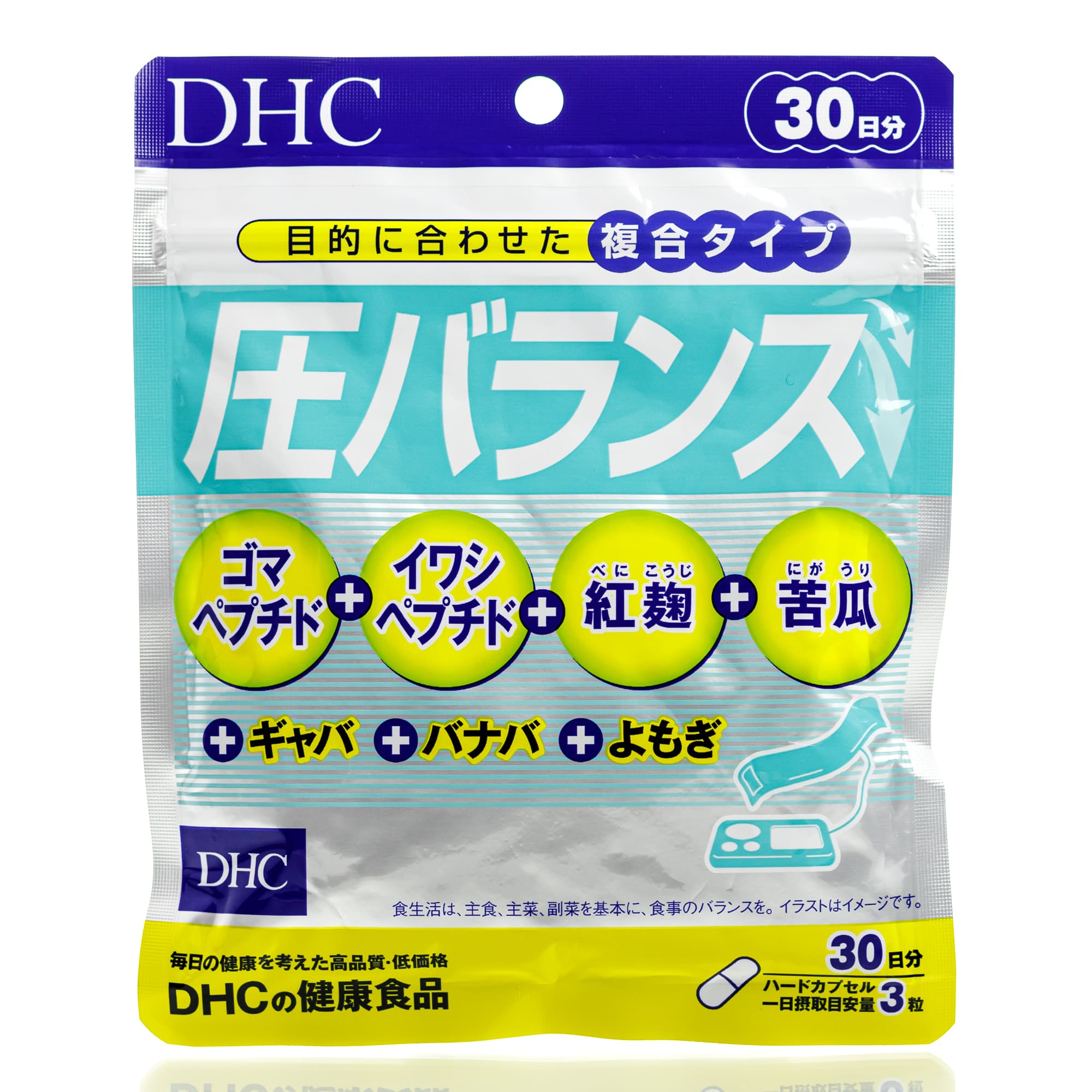 Состав: экстракт красного дрожжевого риса 180 мг. (Monakorin K-содержащих красный метаболический синдром дрожжей 2,7 мг.), экстракт момордики 90 мг. (charantin (стероидный сапонин) 0,6%), экстракт полыни 45 мг., GABA (гамма-аминомасляная кислота, ГАМК) 30 мг., экстракт банана 3 мг. (corosolic кислота 18%),кунжутный пептид 180 мг., пептид сельди иваси 90 мг., кристаллическая целлюлоза, стеарат кальция, модифицированный крахмал, желатин, красители.