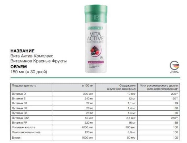 Действие Vita Active от LR